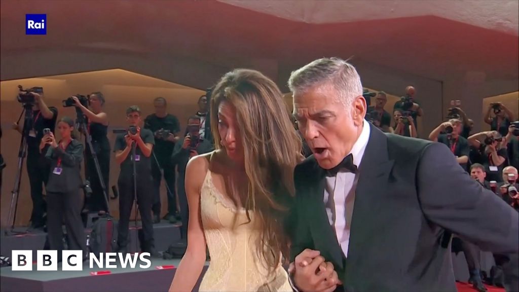 George Clooney sprang into action to help a fallen photographer at the Venice Film Festival in Italy.