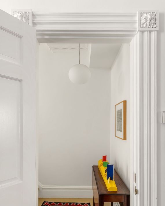 A door off the hall opens to a parlor with an original fireplace. A painting by Alfred Jensen hangs opposite a mirror in a rococo frame. The bust of Lincoln was carved shortly after the assassination and placed on a table by Joseph Holtzman, an artist and a founder of the magazine Nest. “There’s also something lighthearted and playful about the way in which you experience the house,” said Mason.