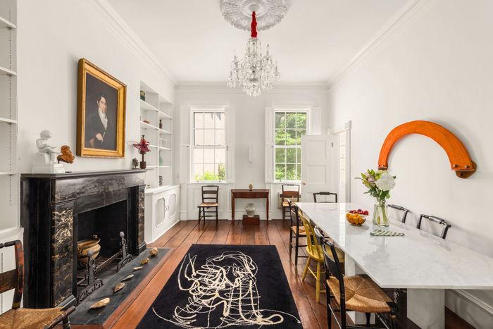 Twenty-nine Vandam dates to 1834, says their broker, Leslie Mason, a trustee of the nonprofit Village Preservation who also sold the home next door, put up by the same builder, Daniel Turner. Mason found that Turner had leased the land from Trinity Church and designed for other New Yorkers like him: business owners and craftsmen, a cabinetmaker and the owner of a paint store. Its rooms were eventually rented to boarders, and by 1919 developer William Sloane Coffin Sr. bought the block, and much of the neighborhood, with an eye toward keeping the bulldozers away. By 1966, the row was landmarked, and its interiors might be the most intact thanks to its last owner, Eugene Rooney, a contractor with an interest in preserving townhouses. He saved fireplaces and moldings, redid floors with pine from a Virginia barn, and brought cabinetry from an 1880 townhouse in Brooklyn.