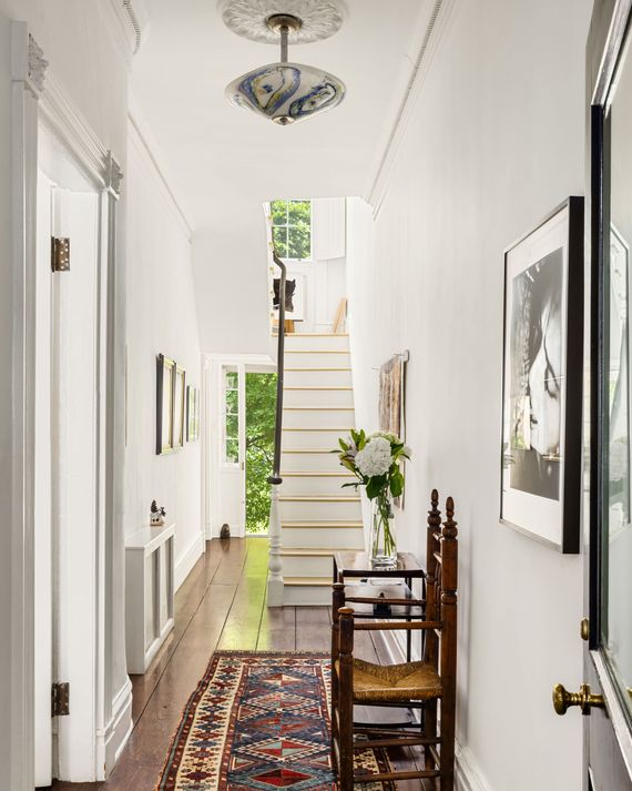 The parlor hall gets light from the backyard — a design original to Federal houses that is often lost when buyers put on additions, said Mason, the broker. The family turned the space into a gallery. Down the hall are pieces by Gillian Wearing, Pat Steir, and their daughter, the artist Martha Tuttle. A photograph (right) is by their friend Kiki Smith.