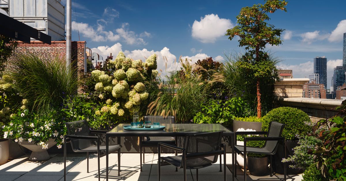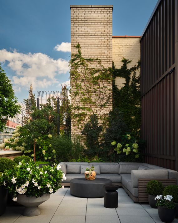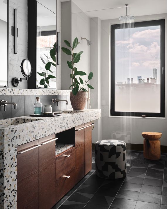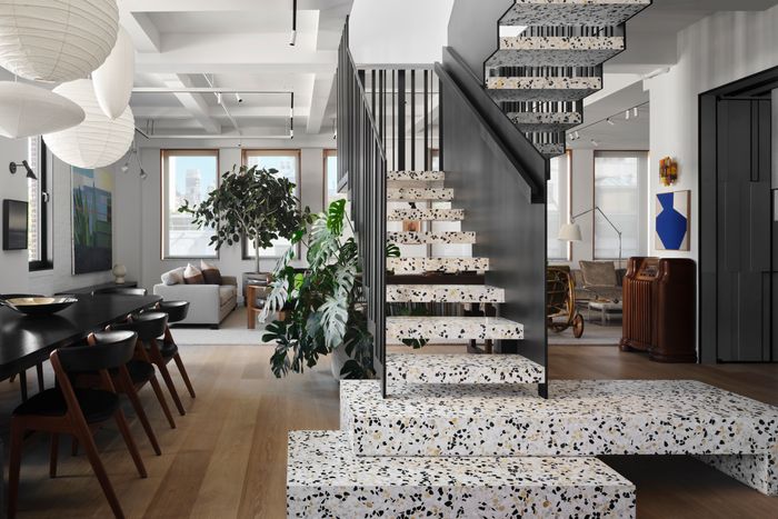 Their biggest move was opening the enclosed staircase leading to the roof garden, then covering it with terrazzo tile. “Terrazzo reads luxury in Italian design,” Hadadi says, “and yet I grew up with it in my parent’s house because it was a very basic, utilitarian material.” On the roof, they wanted to avoid against anything too manicured. “One of our inspirations was the landscape design of the High Line,” he says.