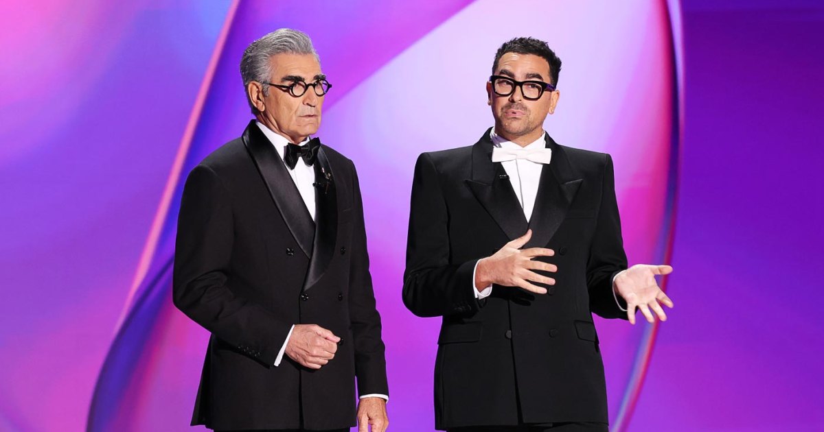 Hosts Eugene and Dan Levy were all Schitts and giggles during their 2024 Emmy Awards monologue, even if some of the comedic nominees weren’t quite so LOL.