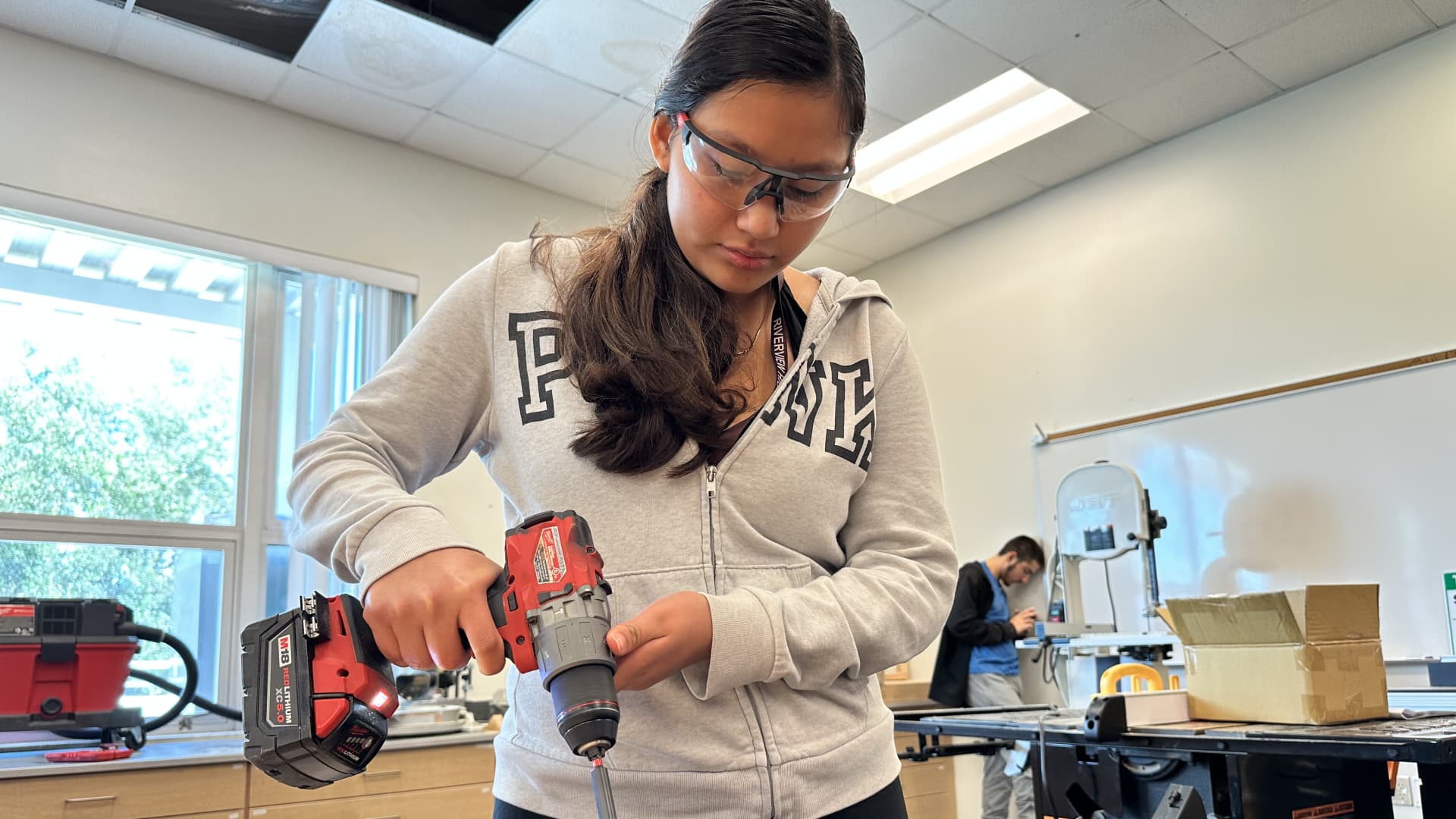 Angela Ramirez-Riojas, 18, is enrolled in Riverview High School’s construction academy.