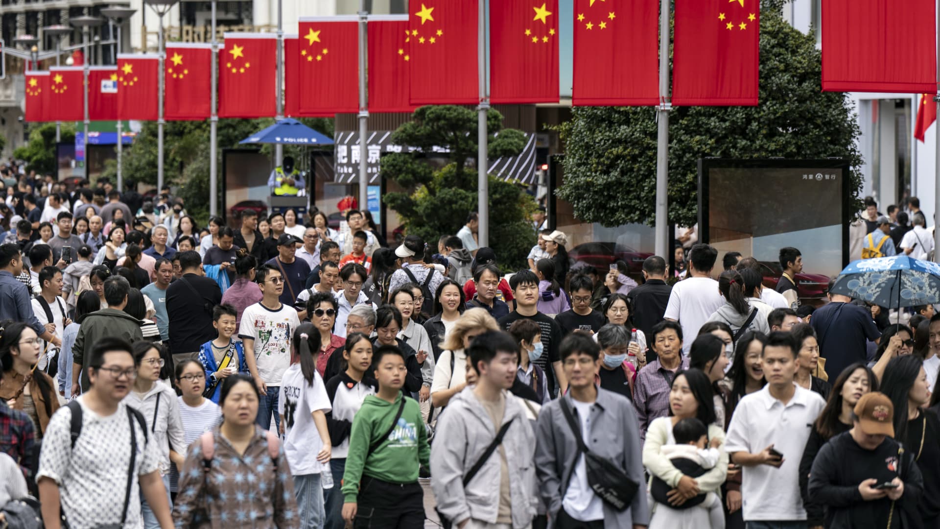 Shoppers on Nanjing East Road in Shanghai, China, on Wednesday, Oct. 2, 2024.