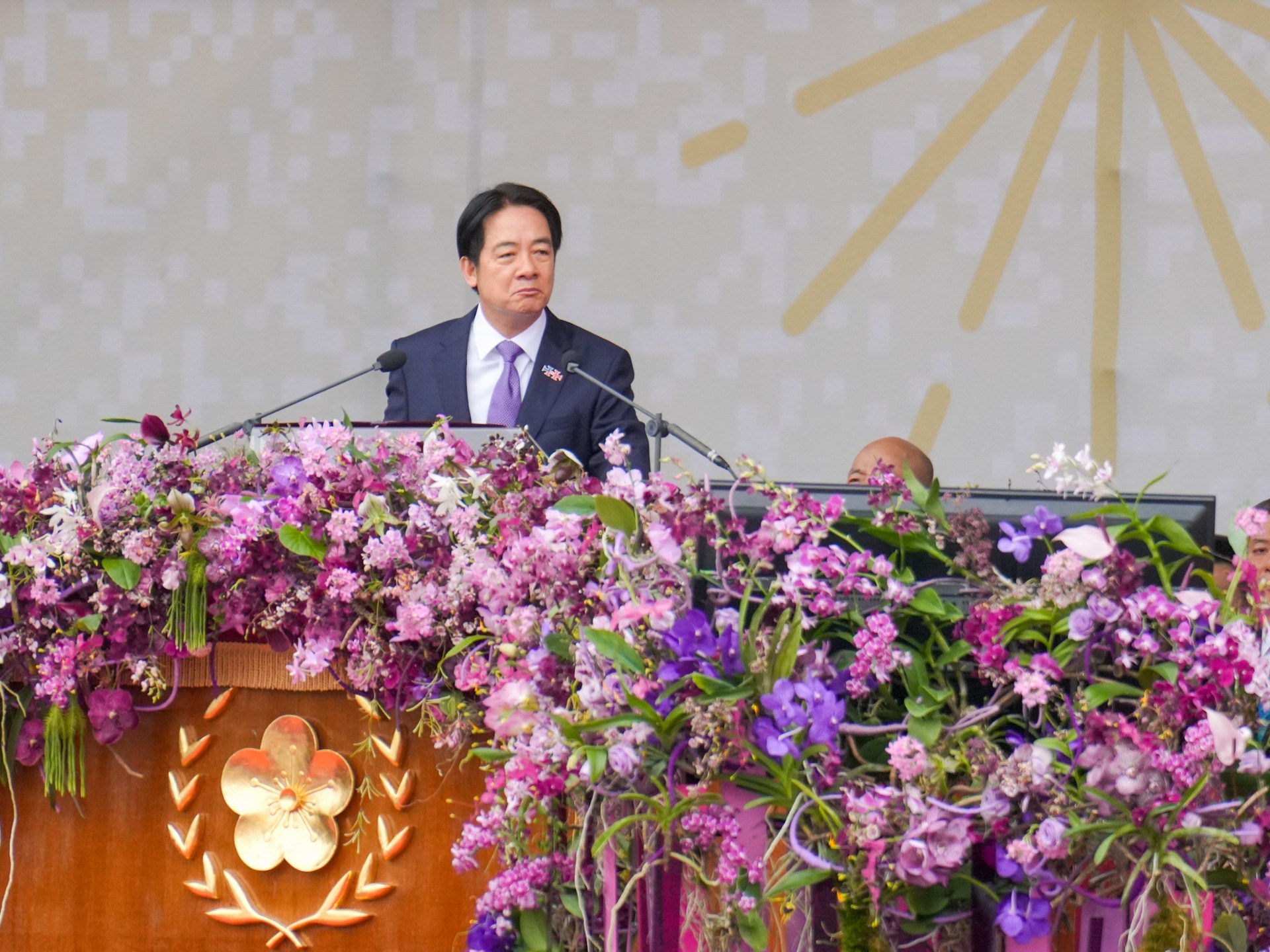 “Our democracy is growing and thriving,” he said, standing at a podium set up in front of the presidential office. “The People’s Republic of China [China’s official name] has no right to represent the people of Taiwan.”