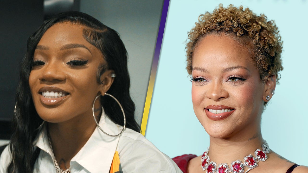 GloRilla dropped her debut album GLORIOUS today. ET was behind the scenes on her new music video for “Hollon” where she shared that she was just trying to be characteristic. She said she has “‘pretty cool features” and hopes to collab with Rihanna next!