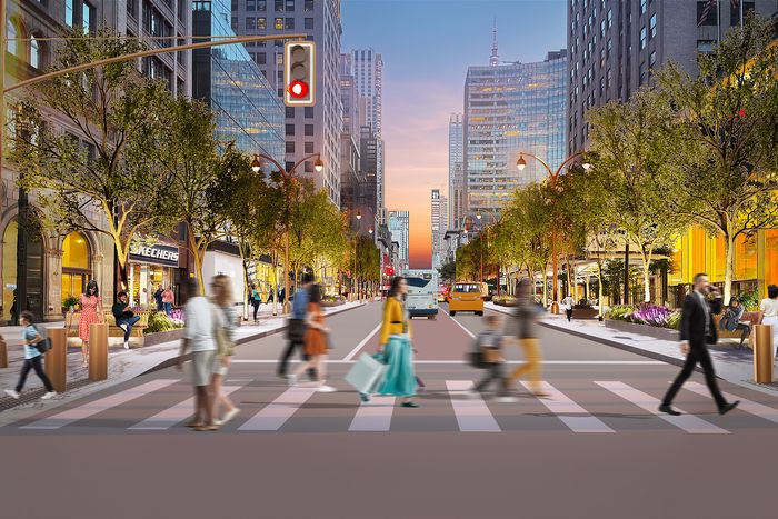 The de Blasio administration tried a version of the Fifth Avenue plan, and couldn’t get it over. The Adams team’s announcement came from the mayor as well as Meera Joshi and Ya-Ting Liu, two of the few major figures in City Hall who have not been dinged lately, and Maria Torres-Springer, who took over the role of first deputy mayor just days ago. More than that, though, it has explicit backing from lots of other public, private, public-and-private, and activist entities — the Fifth Avenue Association, the Grand Central Partnership, the Central Park Conservancy, the Bryant Park Corporation, the Regional Plan Association, the New York League of Conservation Voters, Open Plans. That suggests that this is pre-cleared, so to speak: Most everyone with power who would be able to say no has already been consulted and brought around to a yes. The last hurdle in these situations is typically community opposition: residents who pound their firsts about increased traffic, about ambulance access, about the loss of parking spots, about any change to the status quo. (The Times story, notably, says that “a public meeting about the plan will be held on October 29, and the overall design could be revised. But the plan does not require major approvals that could block it entirely.”) This stretch of Fifth has comparatively few residents to be cranky about it (beyond a couple of notable mixed-use towers), and virtually no curbside parking to argue about, perhaps defanging the opposition somewhat. Besides, who the heck shops at Bvlgari and expects to park out front? You just call your driver and have him pull around.