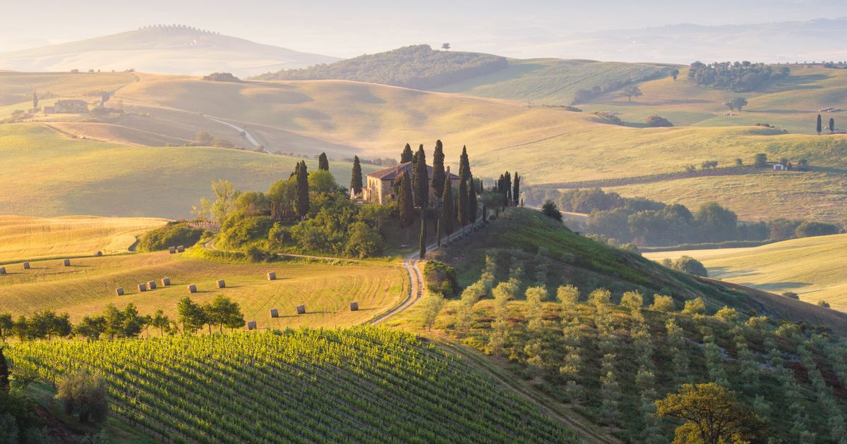 This is a stock photo of a real Italian hill town where people use seed oils.