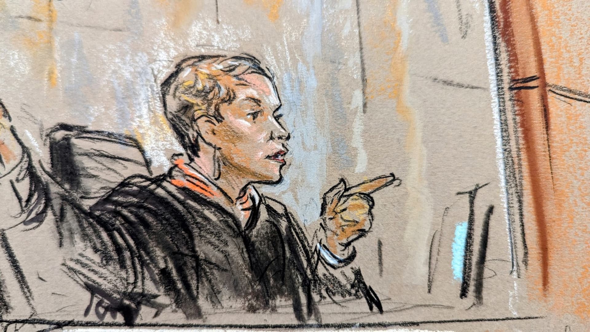 Courtroom sketch depicting Judge Tanya Chutkan in an exchange with Donald Trump’s lawyers.