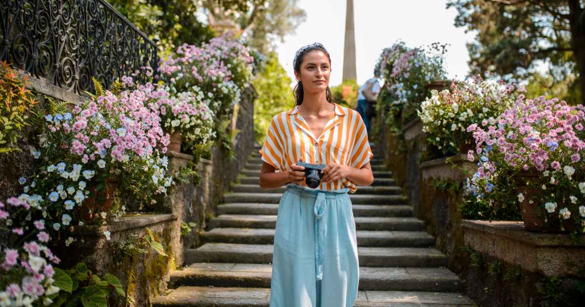 4. Striped up: Vertical stripes are a flattering hack to look leaner from every angle! We adore this casual button-up top for casual and dressy occasions alike.