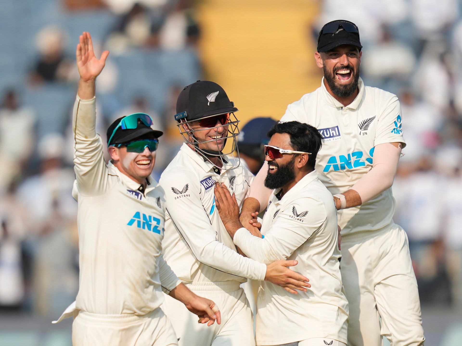 New Zealand were bowled out for 255 in their second innings after skipper Tom Latham’s 86 and handy contributions lower down the order put them in a strong position to secure a first-ever series victory in India.