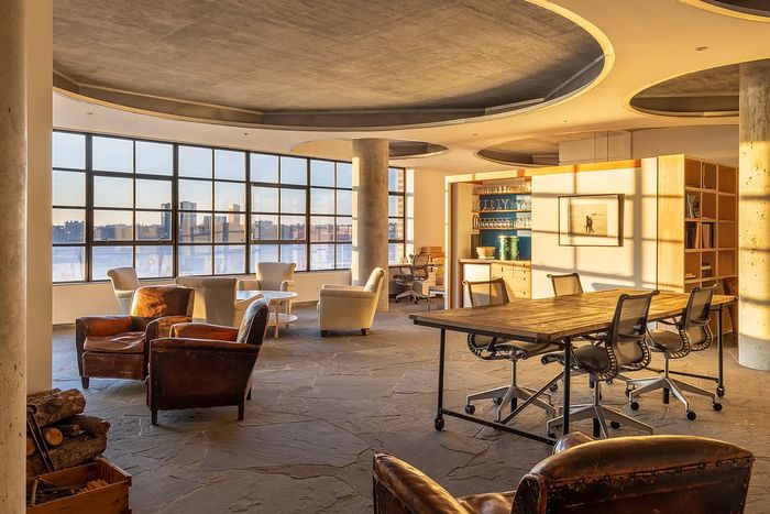 The West Village condo is a two-bedroom, two-and-a-half-bath loft in architect Cary Tamarkin’s 495 West Street, a boxy 1998 structure with bands of corbelled brick, industrial-style steel-frame windows, and just nine sprawling apartments (mostly floor-throughs, plus a few duplexes). Tamarkin is known for designing and developing luxury condos that still feel like artists’ lofts: Leibovitz’s 3,200-square-foot apartment has huge steel-frame windows, exposed columns and concrete, and an open layout. There are also plenty of luxurious touches: heated bluestone floors, a wood-burning fireplace, a soaking tub, Hudson River views, and a library nook. (Leibovitz had a similar nook in her Central Park West apartment.) The condo was listed with Corcoran’s Deborah Kern, the same broker Leibovitz worked with on her Central Park West place. The listing described the property as being “currently set up as an artist’s photography studio.”