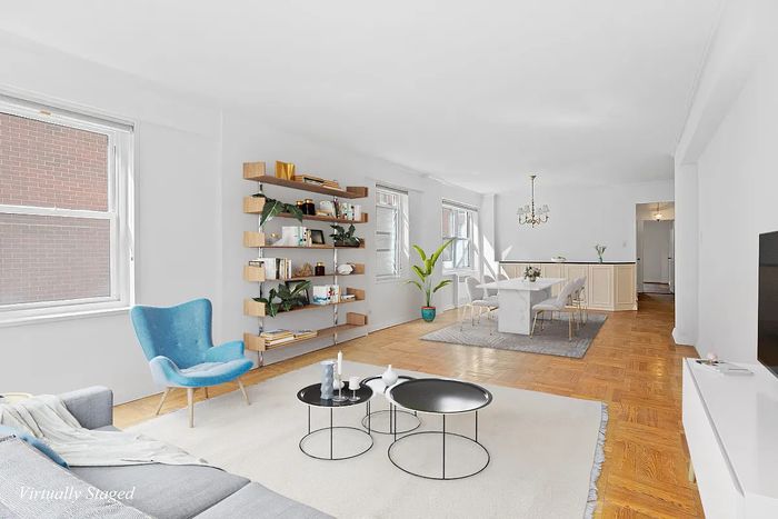 This true two-bedroom with a huge living room and two walk-in closets is quite a deal. (A few floors up, a two-bed with an almost identical layout and the same square footage is asking more than a million.) The views are mostly of other buildings, but the listing notes that you do get partial glimpses of the East River, tastefully described as “OBLIQUE RIVER VIEWS.” Get ready to pony up in monthlies, though — the maintenance is $3,114. That does include a gym, bike room, and full-time doorman.