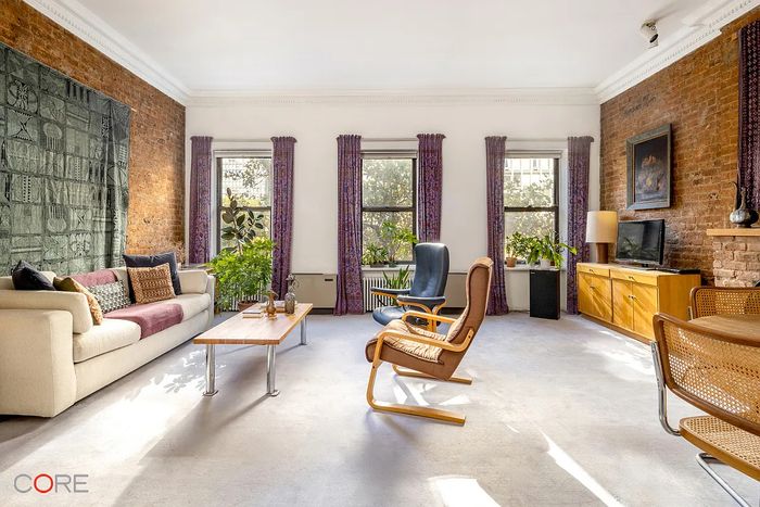 This is one of the midtown blocks that you could easily mistake for Park Slope if you, I don’t know, had a flower pot fall on your head. But it’s pretty. This floor-through townhouse co-op has a lot of cute details, like the working brick fireplace and the skylights in the kitchen and bathroom. The appliances need updating and you might want to rip up the carpet (though the shade is very now and I think as a culture we’ve gone the wrong way on wall-to-wall), but it’s spacious enough for a home office. The monthlies are high, at $2,754, but the listing notes that once the ground-floor space is sold or leased, it should drop below $2,000.