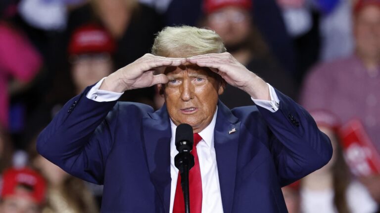 Former US President and Republican presidential candidate Donald Trump gestures as he speaks during a campaign rally at Van Andel Arena in Grand Rapids, Michigan on November 5, 2024.