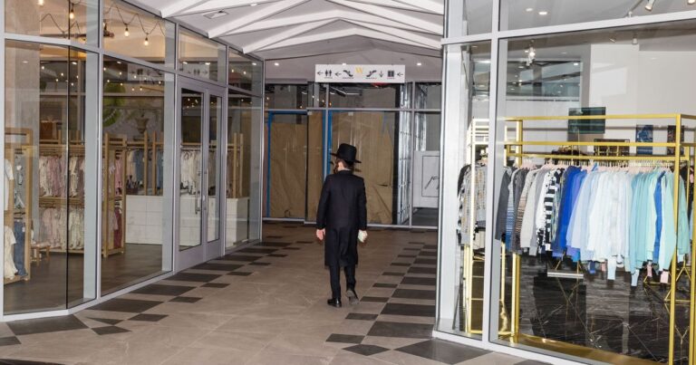 Though a few stores have been open for months, two of the three floors are now fully operational with 20-plus shops and more than 50,000 square feet of retail. Some areas are still not quite fully baked; alongside a kids’ play area in the basement is an unfinished-concrete box of a room for stroller parking, right next to the kosher-certified cotton-candy machine. In the shops, modest clothing is abundant in stores like Pleats (“Skirts for every season, for every reason”), Think Closet, Runway, and Camomille [sic]. Some of the businesses are exclusive to the W, but some have branches in other Orthodox enclaves like Monsey and Borough Park.