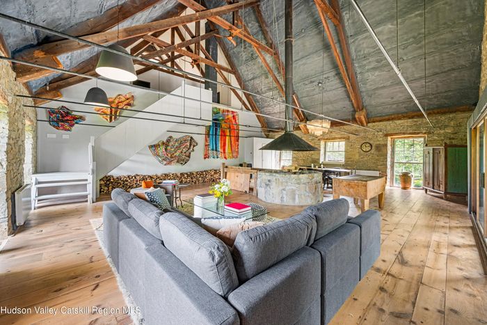 A mini-compound that was once part of the Byrdcliffe Arts Colony. The house was built in 1900 but recently redesigned and includes custom floor-to-ceiling windows, bluestone flooring, and a floating steel staircase. Apart from the main house, there’s also a separate studio building that has a full bath and outdoor shower. The entire thing sits next to a heated gunite pool framed by bluestone terracing. It’s pricey for the area but turnkey and well-designed.