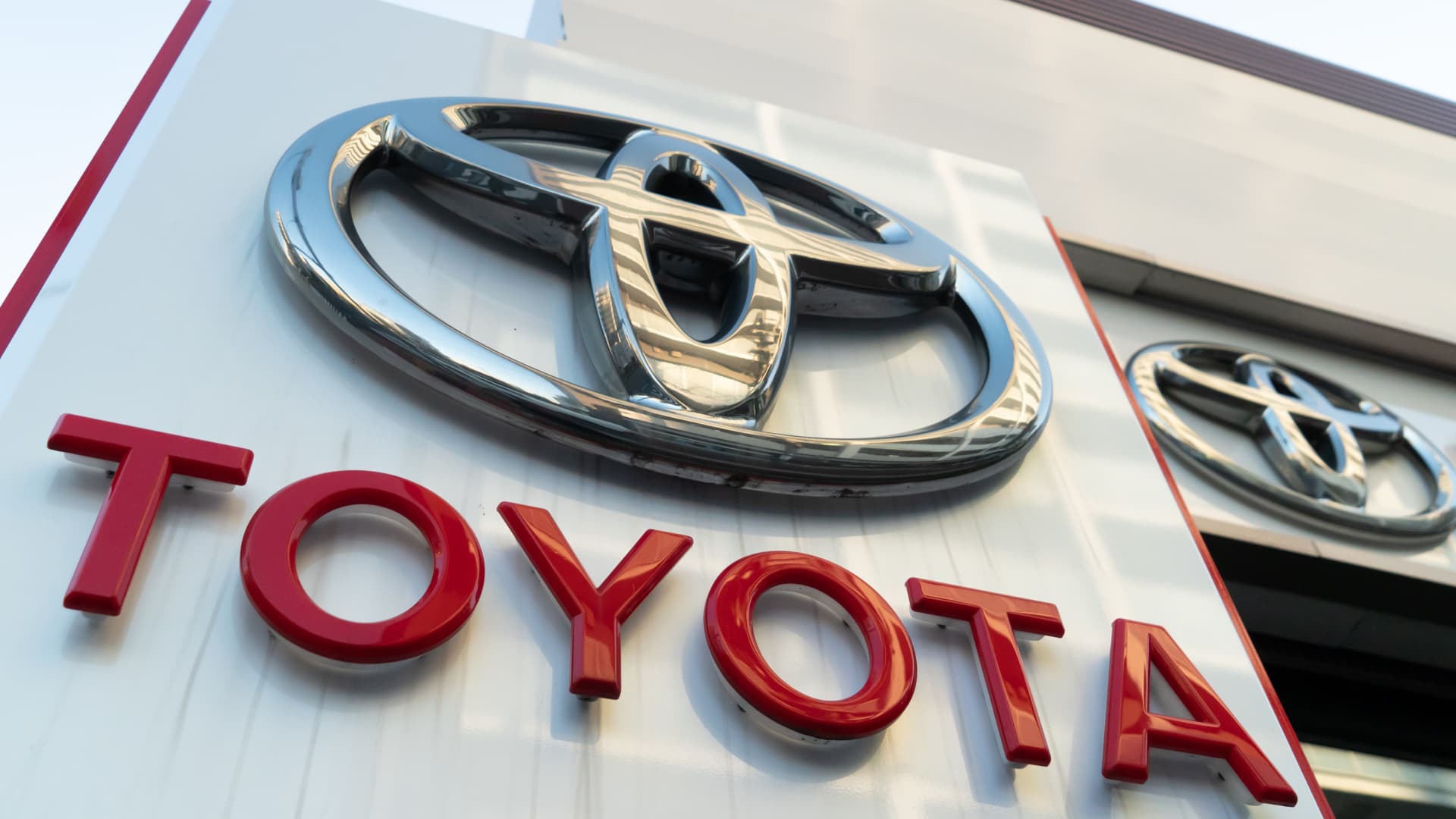 A sign is displayed outside a Toyota Motor Corp. dealership on Jan. 30, 2024 in Tokyo, Japan.