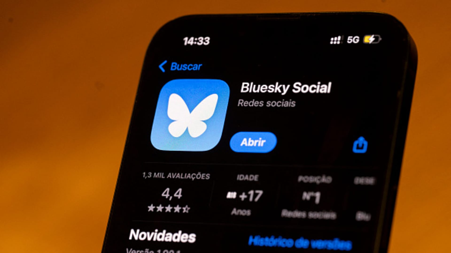In this photo illustration, the Bluesky Social logo is displayed on a cell phone in Rio de Janeiro, Brazil, on September 4, 2024.