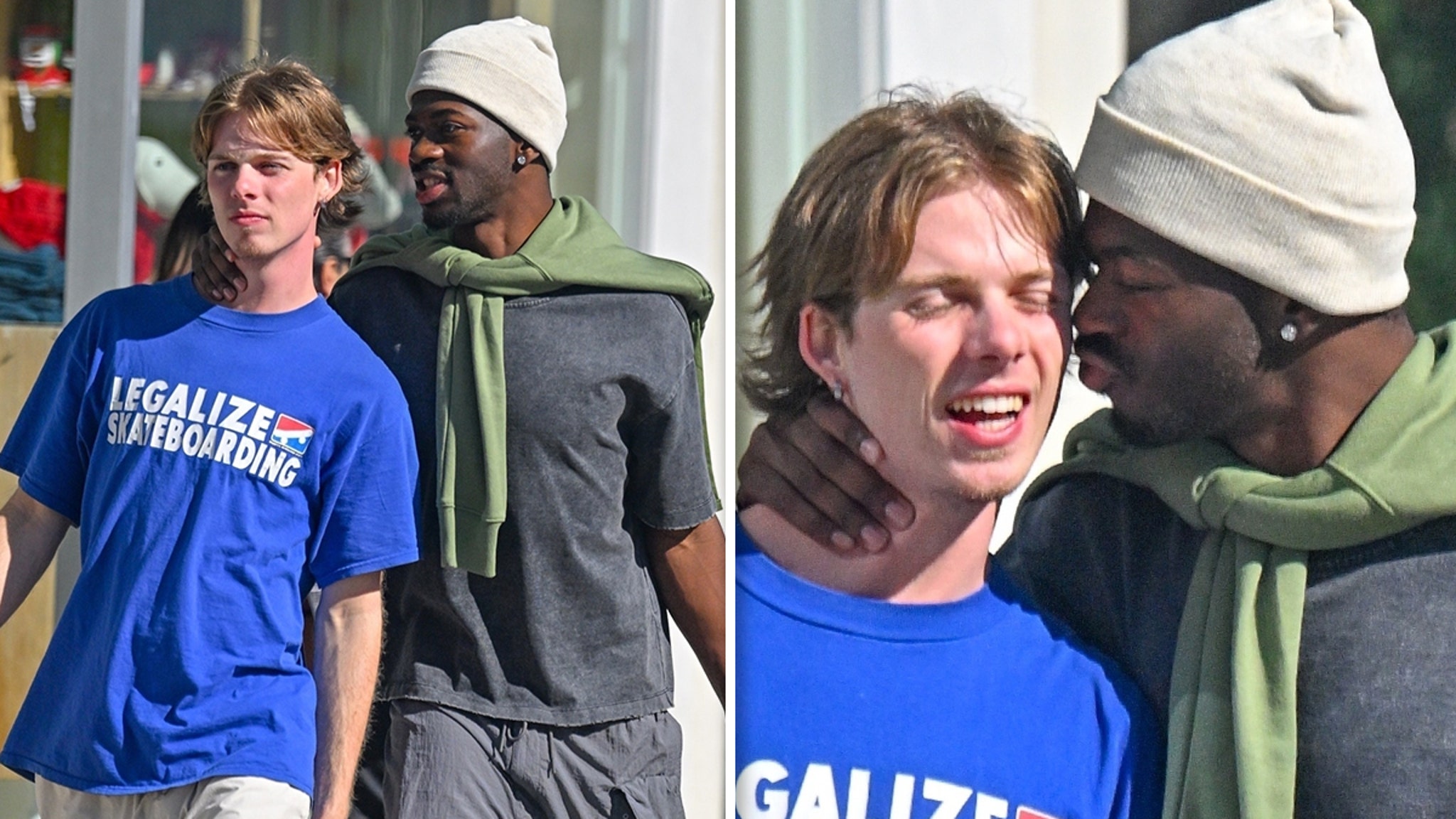 The rapper stepped out in Studio City to do some shopping with Cody and, while the two were walking down the street, LNX leaned over and smooched him on his left cheek.