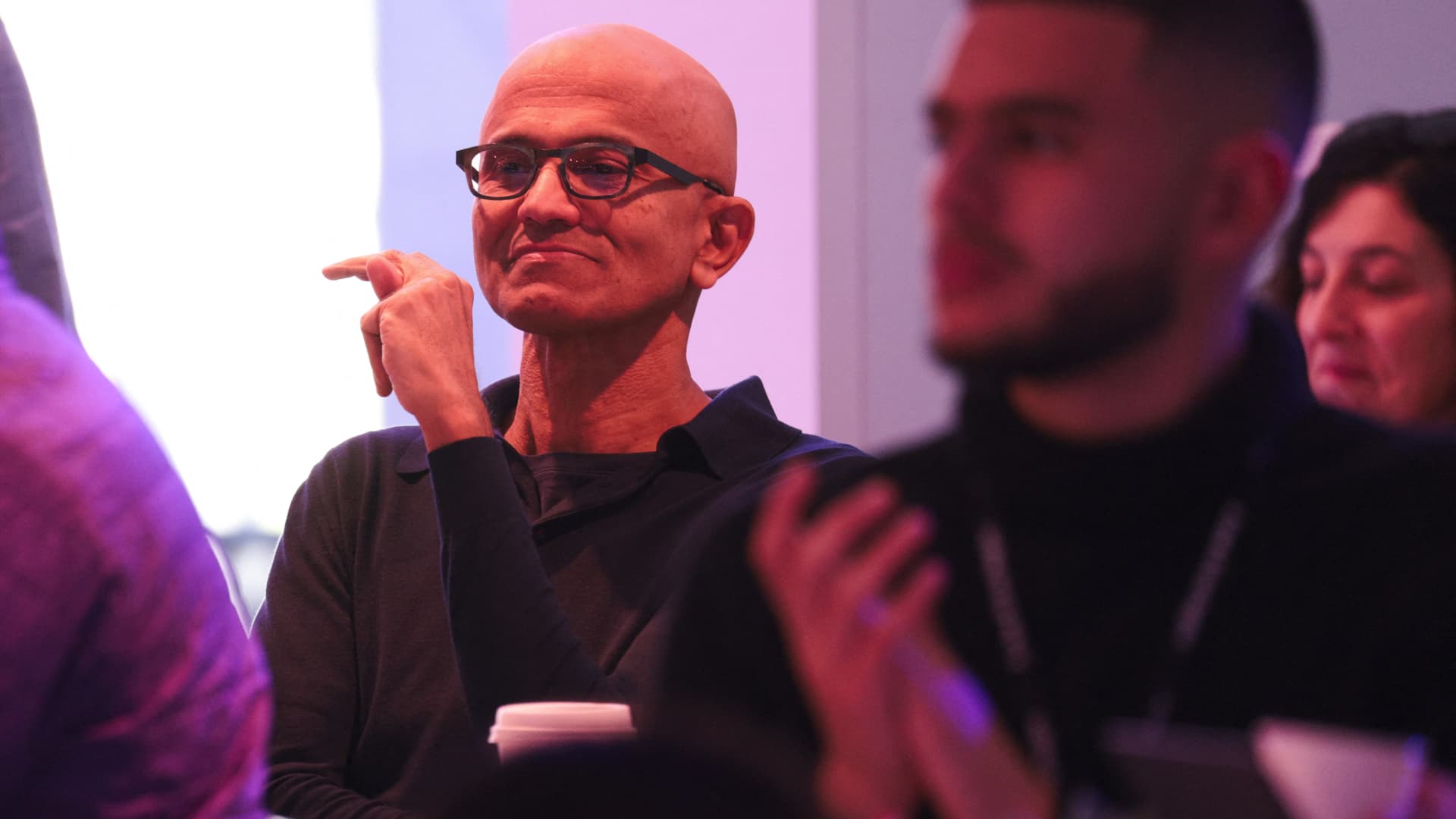 Microsoft CEO Satya Nadella watches from the audience during a press briefing at Microsoft’s campus in Redmond, Washington, on May 20, 2024.