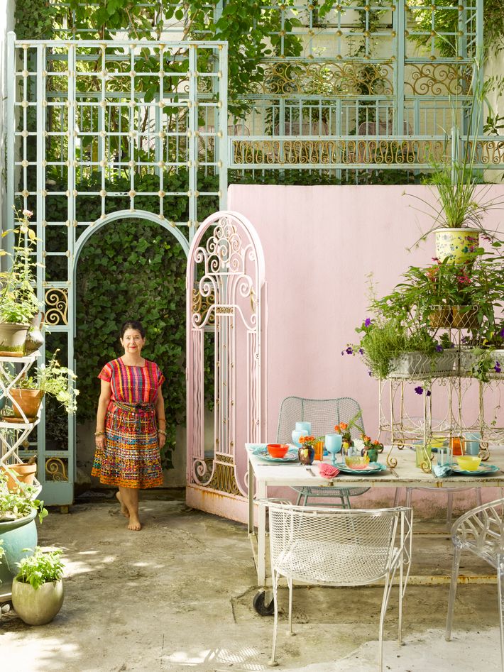 Reiss has redone it herself, with the help of artisans, room by room. She repurposed parts of the mantel in her bedroom as decorative elements around the door to the dining room. “I have to do things in a challenging way,” she says. The craftsperson who did the work on her kitchen learned how to make Mexican pool tiles into mosaics for the primary bathroom.