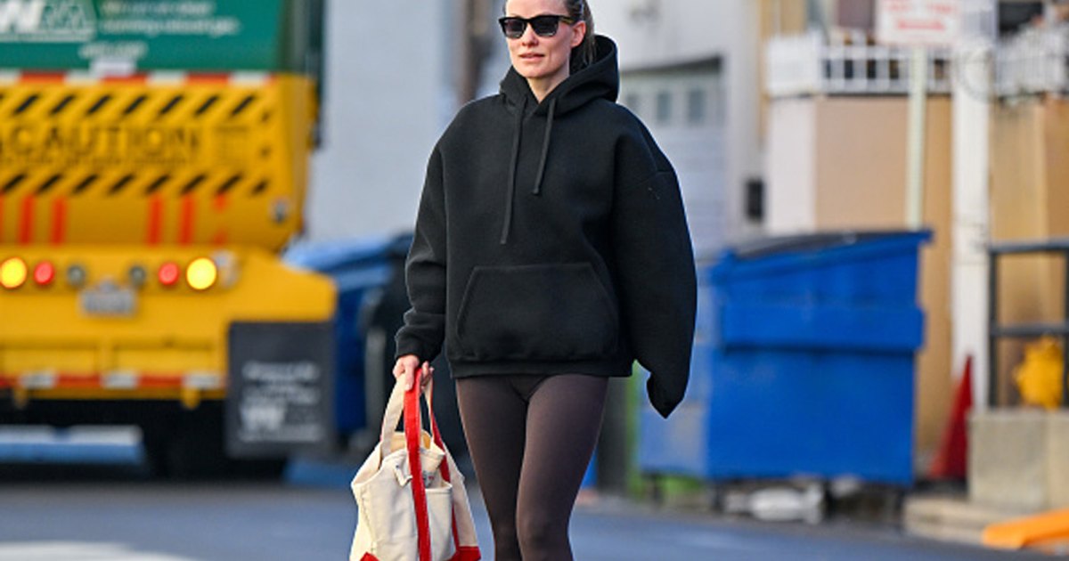Like we’ve seen her many times before, the actress was just spotted coming out of a workout class in Los Angeles, California on November 18, 2024. Wilde likes to keep it minimal when it comes to her athletic attire, as she was wearing a nearly all black outfit consisting of an oversized hoodie, leggings, the Hoka Bondi 8s and some Ray-Ban sunglasses.