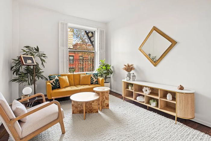 A classic one-bedroom in the Clinton Hill co-ops, a 12-building complex in the heart of Clinton Hill. The apartment gets a lot of light and comes with five closets for maximum storage. You’re close to multiple trains and the restaurants on DeKalb that are all nice but kind of the same. Monthlies are $1,139 but come with a laundry room, 24-hour security, and a package room. The courtyard is lovely instead of depressing. Another one-bedroom a floor up with the same layout is going for $100,000 more