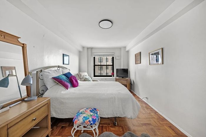 The bedroom in this co-op can fit a king-sized bed, as shown in this listing photo.