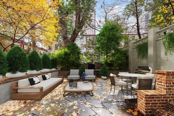 Extras: Walled yard accessible only to the owners, plus access to the larger, shared private garden; 19-foot-wide terrace on the parlor level and off the fifth-floor primary bedroom suite; cellar with laundry and storage